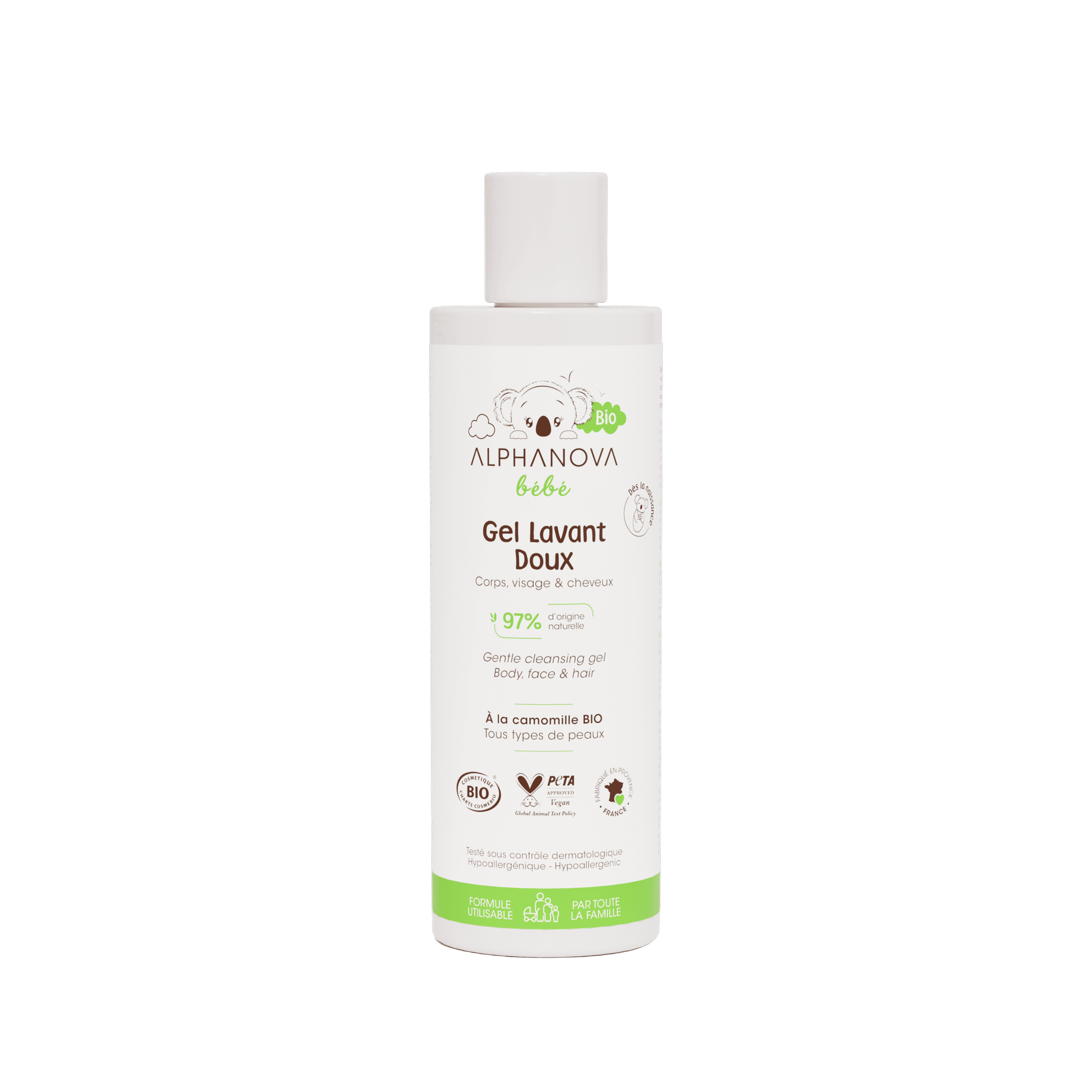 ALPHANOVA bebé® es una gama completa de productos de higiene y de cuidados hipoalergénicos**, de origen natural, certificados ecológicos, respetuosos con la piel de los bebés y del medio ambiente.